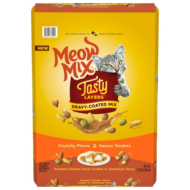 Meow Mix Tasty Layers Dry Cat Food Roasted Chicken Flavor Coated In Homestyle Gravy 13 Lb Bag Walmart Com